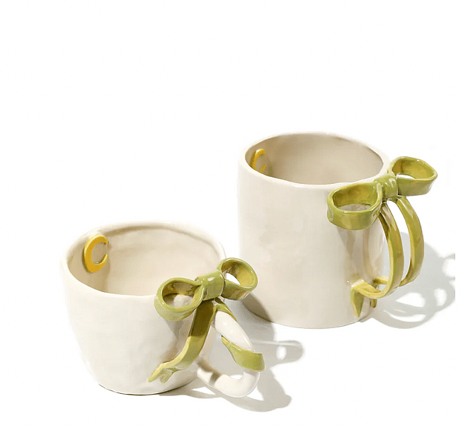 Add a pop of color and charm to your coffee routine with Noon and Moon's BowKnot Coffee Duo Mugs. This set of two handmade mugs features the signature bow-shaped handle in three vibrant colors—Blush Pink, Lavender Purple, and Olive Green—giving you the perfect combination of elegance and whimsy. Whether you're sharing your favorite brew with a friend or treating yourself to a matching pair, these mugs are the perfect blend of functionality and art